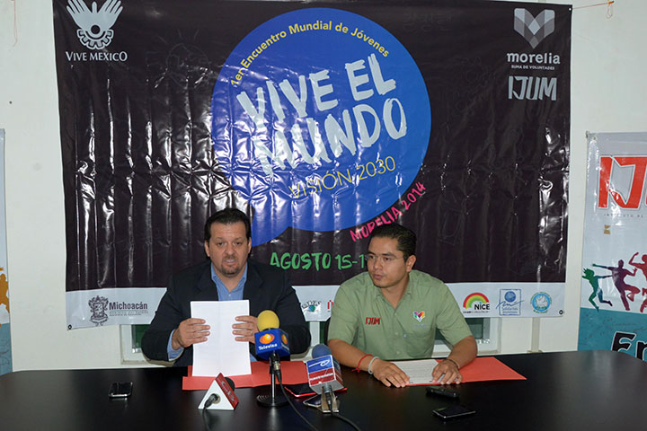 NOTICIAS 30/07/2014Preparan el Primer Encuentro Mundial de JóvenesCon el objetivo de crear un espacio para intercambiar ideas, convivir en un ambiente internacional de respeto y propiciar un entendimiento global de paz, el Ayuntamiento de Morelia, a través del Instituto de la Juventud Moreliana (IJUM), en una Suma de Voluntades con la Organización Vive México, prepara el Primer Encuentro Mundial de Jóvenes, Vive el Mundo: Visión 2030.