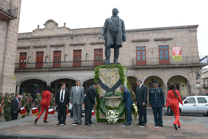 NOTICIAS 18/07/2014Conmemoran aniversario luctuoso de Benito JuárezEl presidente municipal de Morelia, Wilfrido Lázaro Medina, y el gobernador del Estado, Salvador Jara Guerrero, conmemoraron este 18 de julio, el 142 aniversario luctuoso de don Benito Juárez García.