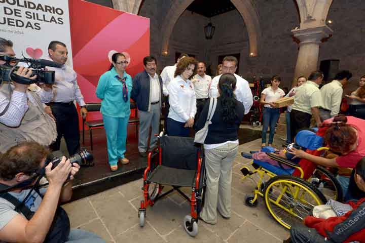NOTICIAS 05/06/2014Ayuntamiento de Morelia entrega 30 sillas de ruedasEl gobierno municipal, al frente del presidente Wilfrido Lázaro Medina, sigue transformando la vida de morelianos que requieren del apoyo para mejorar su calidad de Vida. Este jueves el sistema DIF Morelia liderado por Margarita Oribio de Lázaro entregó 30 sillas de ruedas.
