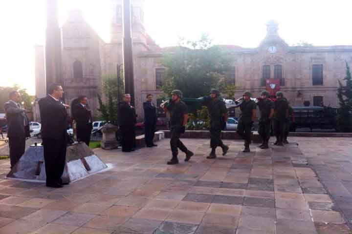 NOTICIAS 18/05/2014Izan banderas con motivo del 473 Aniversario de MoreliaEl presidente municipal de Morelia, Wilfrido Lázaro Medina, encabezó el izamiento de las banderas Nacional, Estatal y Municipal, con el que se conmemoró el 473 Aniversario de la Fundación de Morelia, en el Jardín Morelos de la capital michoacana.