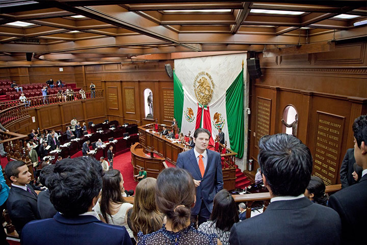 Con el propósito principal de conocer el procedimiento y labor parlamentaria, estudiantes del primer semestre de la Carrera de Derecho en Morelia, sostuvieron una plática con el Presidente del Congreso del Estado Alfonso Martínez Alcázar, en las instalaciones del Poder Legislativo en la entidad.