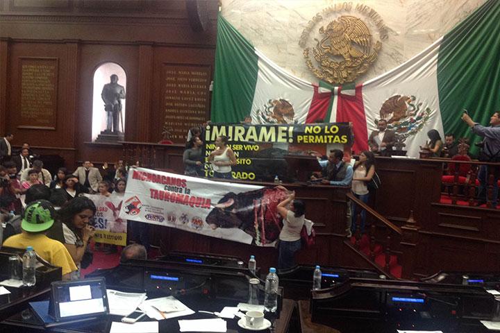 NOTICIAS 04/09/2014Entre protestas, Congreso declara a la Charrería y Toros como Patrimonio CulturalEl repudio y reclamos emitidos por varios activistas protectores de animales, se hicieron presentes en el Congreso del Estado contra los diputados de la 72 legislatura, quienes declararon la charrería y fiesta taurina como Patrimonio Cultural Inmaterial de Michoacán.