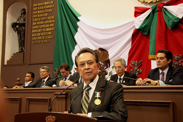 Por su trayectoria y aportaciones al régimen constitucional mexicano, el presidente de la Mesa Directiva del Congreso del Estado, Alfonso Martínez Alcázar entregó la Condecoración "Suprema Junta Nacional Americana" a Víctor Manuel Tinoco Rubí y a la Escuela Secundaria Federal Nº 1 de Zitácuaro, Michoacán.