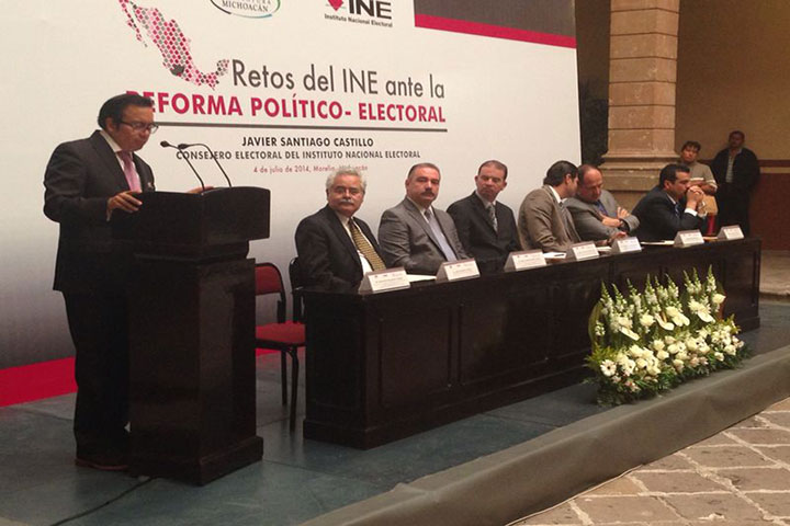 En su intervención, previo a la clausura de la conferencia Retos del INE ante la Reforma Político Electoral, que sustentó el cons... Ver más...