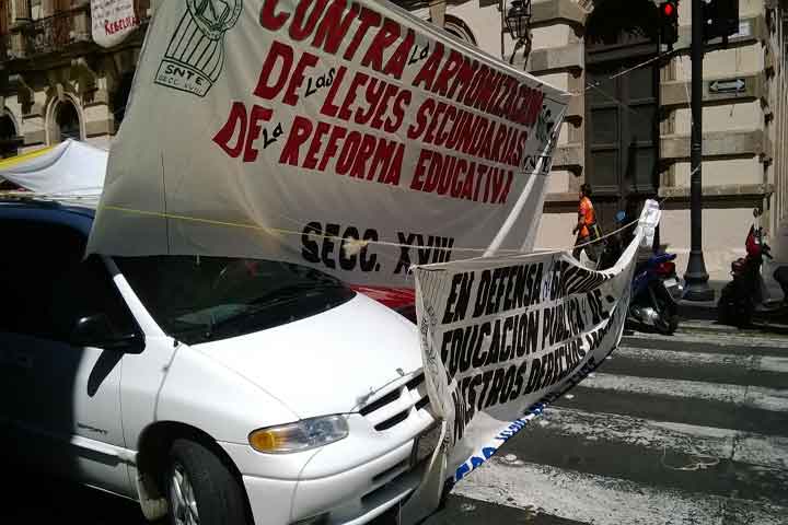 Integrantes de la Coordinara Nacional de Trabajadores de la Educación y normalistas permanecen en plantón a las afueras del recinto legislativo, en donde han instalado casas de campaña, vehÃculos y pancartas, se prevé que sea por tiempo indefinido.