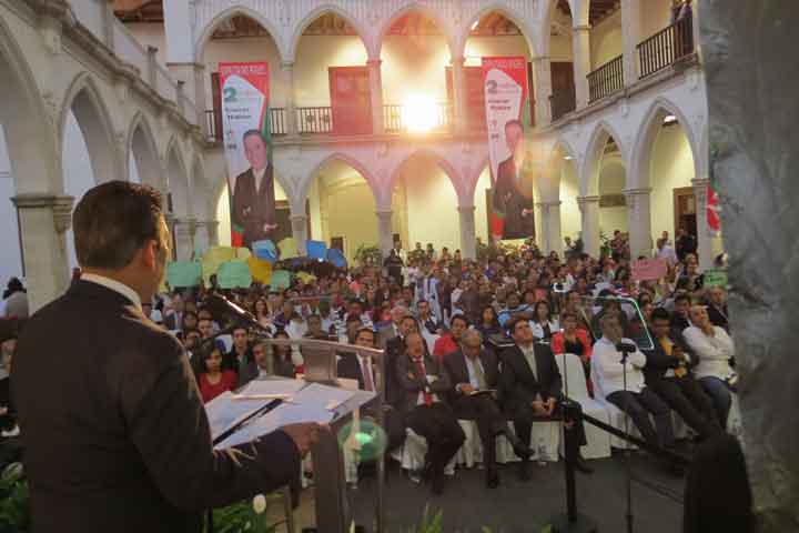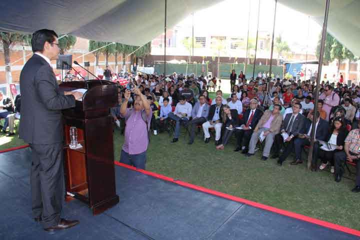 Ante alumnos y profesores de la Preparatoria Federal por Cooperación "Melchor Ocampo", el diputado Jaime Darío Oseguera Méndez rechazó el uso de la violencia, cualquiera que sea su origen o fin, ya que se debe privilegiar el diálogo y la negociación en la solución de cualquier conflicto.