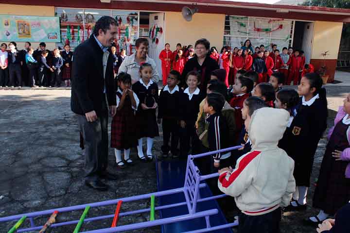 Material para la construcción de un desayunador para los alumnos, como cemento y varilla, mobiliario como escritorios, sillas y pintarrones y equipo de cómputo, fueron los recursos otorgados, con motivo del 50 aniversario de... Ver más...