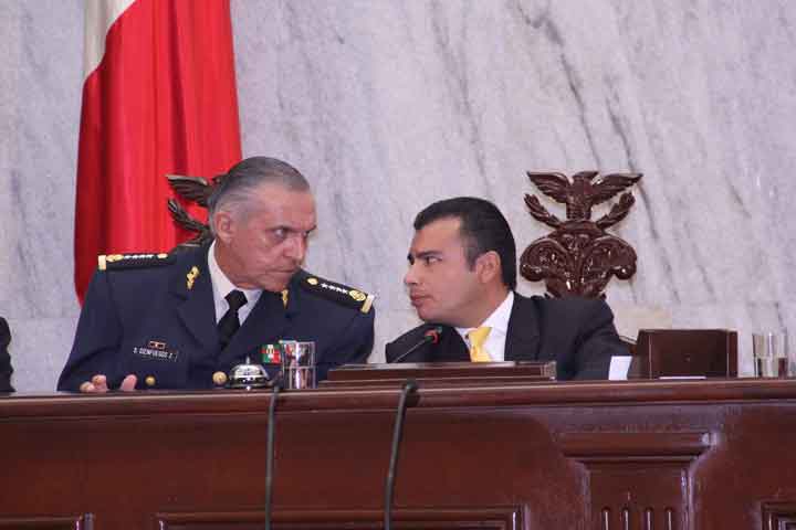 Con motivo de la develación del nombre "Centenario del Ejército Mexicano 1913-2013", inscrito en letras doradas en el muro de honor del Congreso del Estado, por parte del diputado Fidel Calderón Torreblanca, presidente de la Mesa Directiva del Congreso del Estado y el General Salvador Cienfuegos Zepeda, secretario de la Defensa Nacional, el presidente del Poder Legislativo dijo que con este acto solemne, una institución civil reconoce a un... Ver más...