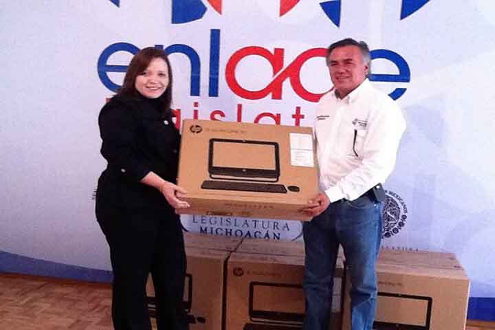 Con el objetivo de promover la calidad en la educación, así como el desarrollo en ciencia y tecnología de los jóvenes estudiantes de la entidad michoacana, la diputada Laura González Martínez, integrante del Grupo Parlamentario del Partido Acción Nacional en el Congreso del Estado, entregó una donación de 20 equipos de cómputo, para equipamiento de aulas virtuales en los municipios de Queréndaro y Zinapécuaro.