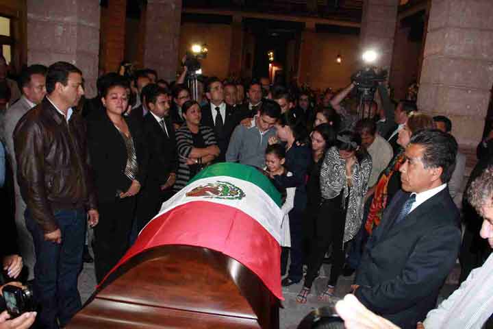 El cuerpo del diputado por el distrito de Coalcomán fue ingresado al salón de Plenos del Congreso del Estado en compañía de familiares y amigos y una com... Ver más...