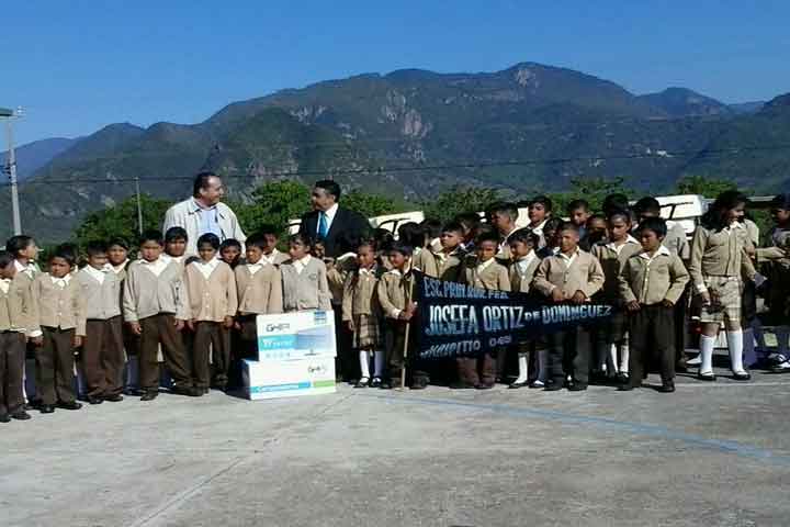 El diputado Sarbelio Molina Vélez, presidente de la Comisión de Educación, entregó en el municipio de Tuxpan cuatro computadoras y 40 butacas nuevas a tres escuelas de educación primaria.