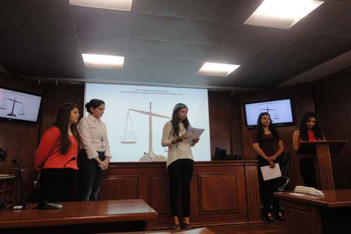 En la sala de juicios orales dentro del ITESM, estudiantes de la carrera de derecho, presentaron a ... Ver más...