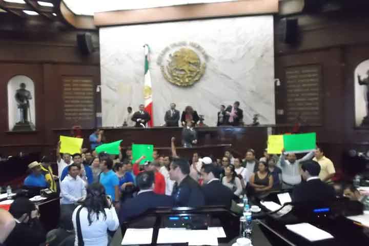 Fue al filo de la una de la tarde cuando un contingente de casi 50 personas pertenecientes al sindicato de Telebachilleratos entró al salón de Plenos para pedir atención de los legisladores locales.