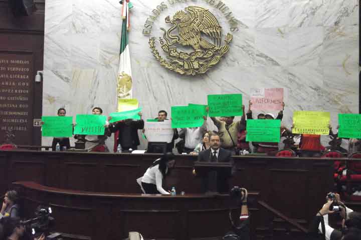 Para exigir que "Sarbelio Molina, que las manos de Telebachillerato", integrantes del sindicato de dicho subsistema, se manifiestan en el Congreso del Estado.