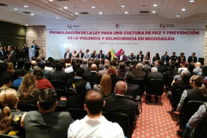 NOTICIAS 26/09/2016Por primera vez, Michoacán tendrá Ley para una Cultura de la Paz y Prevención de la ViolenciaCon la finalidad de garantizar un ambiente de paz en la entidad, este lunes se promulgó la ley para una Cultura de la Paz y Prevención de la Violencia, que permitirá coordinar trabajos y estrategias entre el gobierno de Michoacán, en Congreso Local y la Federación.