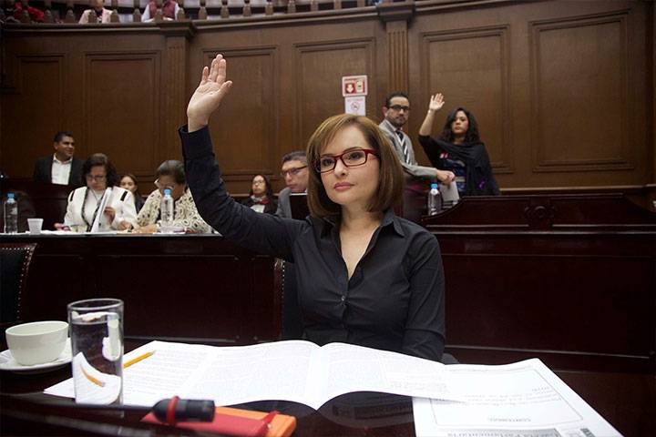 Las diputadas integrantes de la Comisión de Equidad de Género presentaron ante el Pleno del Congreso del Estado, Propuesta de Acuerdo por el que se designa Recipiendaria de la Condecoración "Michoacanas por Michoacán", misma que fue aprobada por los integrantes del mismo, en la persona de la C. María Guadalupe Hernández Dimas.