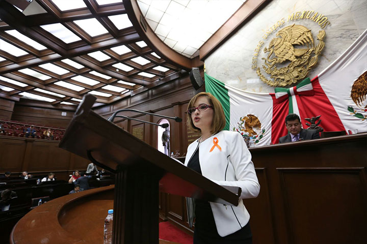 Durante la sesión de pleno de hoy en el Congreso de Michoacán, la diputada Rosa María de la Torre Torres presentó el posicionamiento de la bancada priísta con ocasión del Día Internacional de la Eliminación de la Violencia contra la Mujer así como un exhorto al titular del poder ejecutivo del estado para no desaparecer la Secretaría de la Mujer.