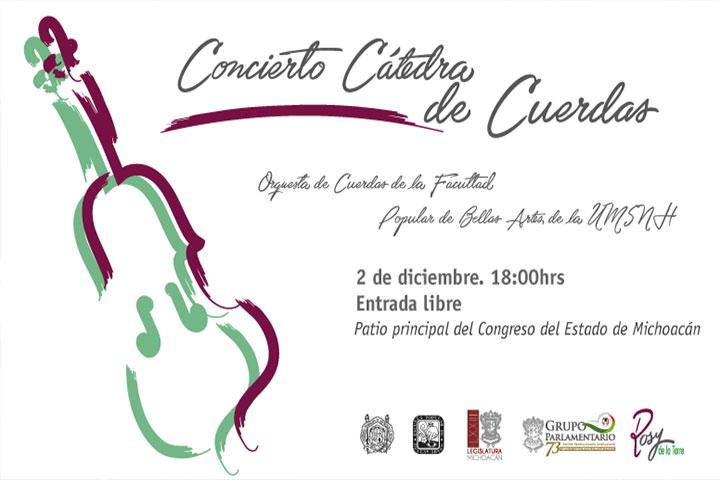 Con ocasión de la celebración del Día Internacional del Músico, la bancada priísta del Congreso del estado, a iniciativa de la diputada Rosa María de la Torre, llevará a cabo el concierto "Cátedra de Cuerdas" interpretado por la Orquesta de Cuerdas de la Facultad Popular de Bellas Artes de la Universidad Michoacana de San Nicolás de Hidalgo.