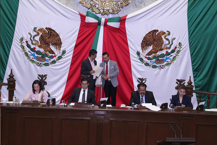 Los diputados integrantes de la Junta de Coordinación Política presentaron al Pleno de la 72 Legislatura iniciativa que propone la inscripción con letras doradas, en el Frontispicio de Honor del recinto del Poder Legislativo, de la leyenda conmemorativa: "Centenario de la Universidad Michoacana de San Nicolás de Hidalgo, 1917-2017", iguales a las de los próceres que ahí se encuentran, los cuales han sido honrados por el Poder Legislativo ... Ver más...