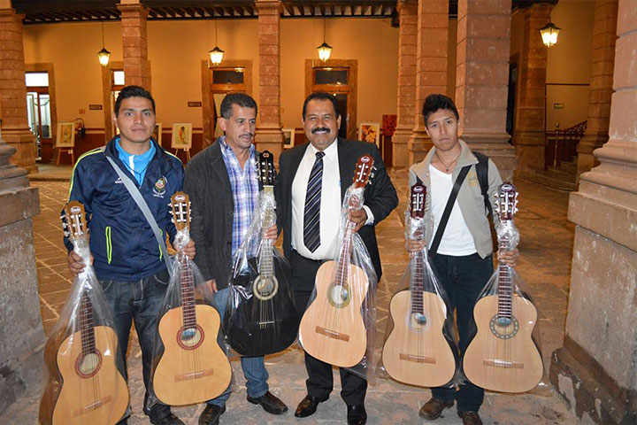 Con el objetivo de fortalecer y alejar a los jóvenes de actividades nocivas, el presidente de la Comisión de Cultura y Artes en el Congreso Local, Leonardo Guzmán Mares hizo entrega de guitarras para la conformación de una rondalla en la Escuela Normal Rural "Vasco de Quiroga" de Tiripetío a los estudiantes.