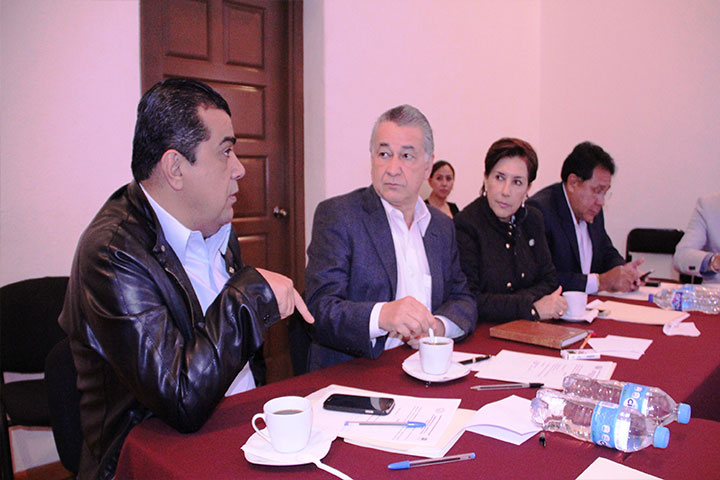 En reunión de trabajo, los diputados ElÃas Ibarra Torres, MarÃa Eugenia Méndez Dávalos, Salomón Fernando Rosales Rey... Ver más...