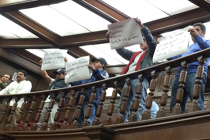 Un grupo de habitantes de la tenencia Santa Fe de la Laguna, Municipio de Quiroga, se manifiesta en el salón de Plenos del Congreso del Estado. La exigencia es que los diputados les ayuden o sean interlocutores para que se solucione el problema de la zona.