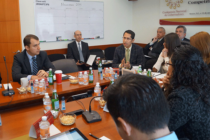 NOTICIAS 24/11/2014Reunión Técnica de la Comisión de Competitividad de la Conferencia Nacional de GobernadoresCon el objetivo de analizar los detalles técnicos del acuerdo del Convenio de Colaboración Técnica con el Banco Mundial para llevar a cabo un Estudio de Implementación de Juicios Orales Mercantiles y Civiles, y conocer la situación de las entidades federativas, se llevó a cabo la Reunión Técnica de la Comisión de Competitividad de la Conferencia Nacional de Gobernadores, en las instalaciones de la CONAGO en el World Trade Center de la Ci... Ver más...