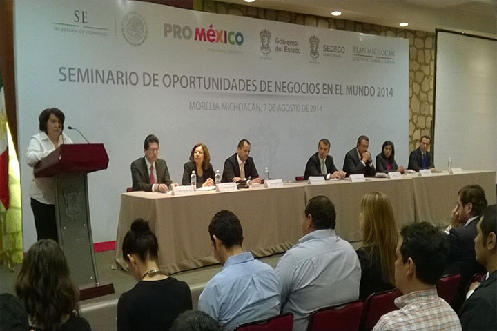 NOTICIAS 07/08/2014Sedeco ve oportunidad de comercializar productos michoacanos a nivel internacionalA pesar que el salario diario en Michoacán es alrededor de 40 pesos menos en relación con el nacional en promedio diario, el secretario de Desarrollo Económico en el estado, Carlos Pfister Huerta Cañedo vio oportunidad de que los productos michoacanos se comercialicen a nivel internacional y mejorar las condiciones económicas de la entidad.