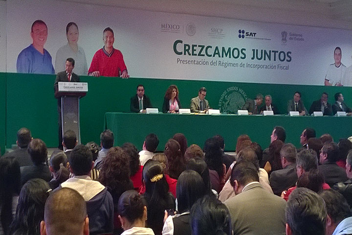 En México 23 millones de personas se encuentran en la economía informal de los cuales el 85% tienen ingresos mensuales menores a 6 mil pesos, el 63% menor a 4 mil y 27 % apenas 2 mil pesos informó el jefe del Sistema de Administración Tributaria (SAT), Aristóteles Núñez Sánchez durante la presentación del Régimen de Incorporación Fiscal Crezcamos Juntos que fue presentado ante autoridades de gobierno federal, estatal, municipal y ciu... Ver más...