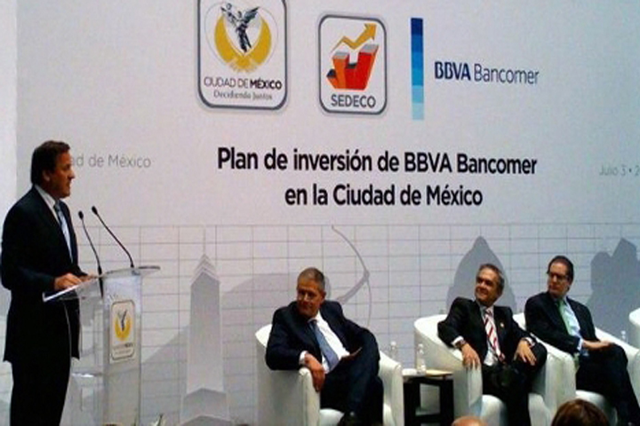 NOTICIAS 03/07/2013Anuncia Bancomer inversión de mil 900 mdd en el DF Grupo Financiero BBVA Bancomer, el más grande del país, invertirá mil 900 millones de dólares en el Distrito Federal, para el desarrollo de un nuevo servicio bancario y convertir a la ciudad en el principal centro económico y financiero de Latinoamérica.