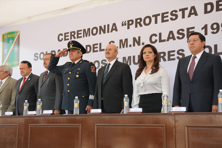 NOTICIAS 05/05/2012"Si México tuviera voz exigiría orden, seguridad y desarrollo", comentan durante el acto del 5 de mayo"Si México tuviera voz nos exigiría orden, respeto, coordinación, seguridad y desarrollo", así lo expresó el General de Brigada D.E. M. Juan Ernesto Antonio Bernal Reyes, Comandante de la XXI Zona Militar, quien hizo un llamado a avanzar juntos y en equipo para combatir la delincuencia, lo anterior durante el acto del 5 de mayo, en el que también se tomó protesta de bandera a soldados del Servicio Militar Nacional y mujeres voluntarias.