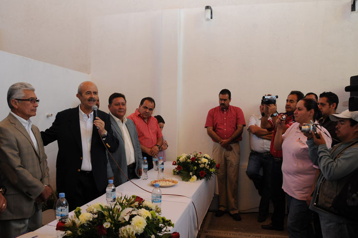 NOTICIAS 12/04/2012Recibe Fausto Vallejo a presidentes municipalesEn cumplimiento a su compromiso de atender a los presidentes municipales todos los días jueves, el gobernador de Michoacán, Fausto Vallejo Figueroa, en una muestra de imparcialidad y suma de voluntades se reunió con munícipes de diferentes regiones, entre ellos los coordinadores de las cuatro fuerzas políticas de la entidad, quienes le anunciaron su disposición por iniciar a la brevedad posible el programa de obra convenida 2012 y trabajar ... Ver más...