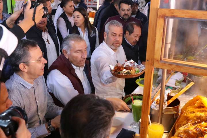 NOTICIAS 15/11/2022Desayunan Bedolla y Adán Augusto en mercado de ParachoEste martes, desde tempranito, don Fernando Garibay se fue a su puesto en el mercado "Morelos" de Paracho para preparar las salsas, la birria y las carnitas, y dejar todo listo para la venta diaria. Cerca de las 10:00 horas llegó el gobernador Alfredo Ramírez Bedolla y el secretario de Gobernación, Adán Augusto López, a "echar" taco y jugo verde para empezar el día.