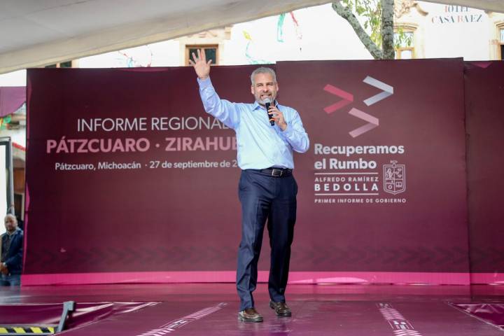 NOTICIAS 27/09/2022En Pátzcuaro, inicia Bedolla rendición de cuentas en plazas públicasTras ratificar el compromiso con el desarrollo de los municipios y pueblos indígenas, el gobernador Alfredo Ramírez Bedolla, rindió su primer Informe de Gobierno Regional en Pátzcuaro.