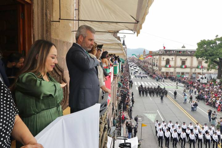 NOTICIAS 16/09/2022Celebran Bedolla y michoacanos Desfile Cívico MilitarMiles de michoacanas y michoacanos disfrutaron del tradicional Desfile Cívico Militar con motivo del 212 aniversario del Inicio de la Independencia de México, al cual asistió el gobernador Alfredo Ramírez Bedolla y su esposa Grisel Tello Pimentel.
