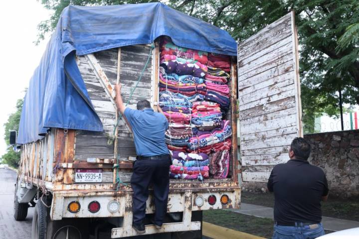 -Coalcomán: 500 dotaciones alimentarias, 500 cobijas, 500 colchonetas ... Ver más...
