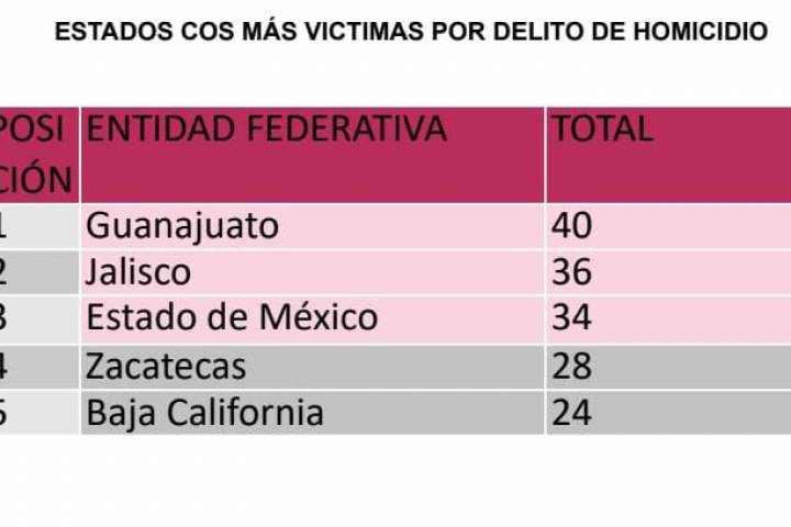 NOTICIAS 06/07/2022Deja Michoacán primeras posiciones nacionales por delito de homicidio: BedollaCon 23 vÃctimas de homicidio reportadas al 5 de julio por las fiscalÃas estatales y dependencias federales, Michoacán se posicionó en el séptimo lugar nacional y con ello, abandonó la relación de los cinco estados del paÃs con la mayor incidencia por este delito.