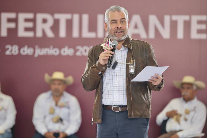 NOTICIAS 28/06/2022Este 2022, Gobierno del Estado otorgará más fertilizante que en los últimos 4 años: BedollaCon la determinación de fomentar la autosuficiencia y la transición a la agricultura orgánica, el gobernador Alfredo Ramírez Bedolla, entregó 72 toneladas de fertilizantes a productores de Tzitzio como parte de las acciones complementarias al programa Agrosano.
