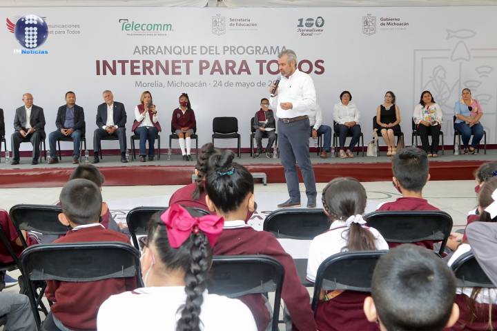 NOTICIAS 24/05/2022Arranca Bedolla programa para llevar internet a escuelas de MichoacánAl poner en marcha el programa "Internet para Todos", el gobernador Alfredo Ramírez Bedolla refirió que el objetivo del Gobierno del Estado es que las más de 11 mil escuelas de Michoacán cuenten con acceso gratuito a la red.