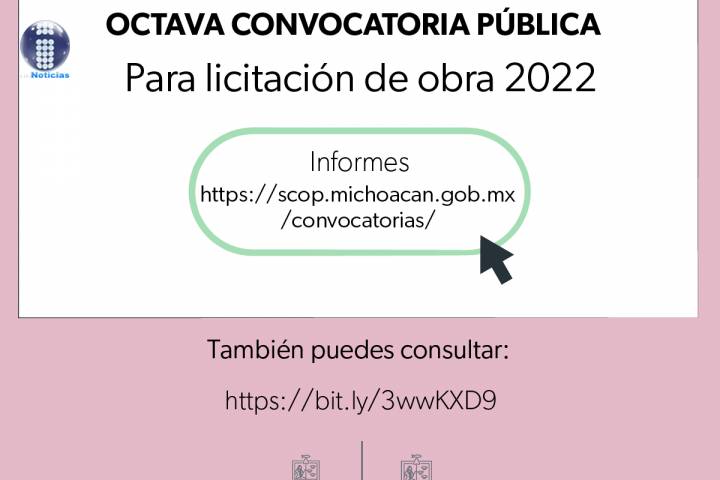 NOTICIAS 17/05/2022Convoca SCOP, a licitación para contratación de estudios y proyectosEl Gobierno de Michoacán que encabeza Alfredo Ramírez Bedolla, a través de la Secretaría de Comunicaciones y Obras Públicas (SCOP), convoca a las personas físicas o morales interesadas en participar en la octava convocatoria pública del año 2022, relativa a la licitación para la contratación de dos servicios relacionados con obra pública, a precios unitarios y tiempo determinado.
