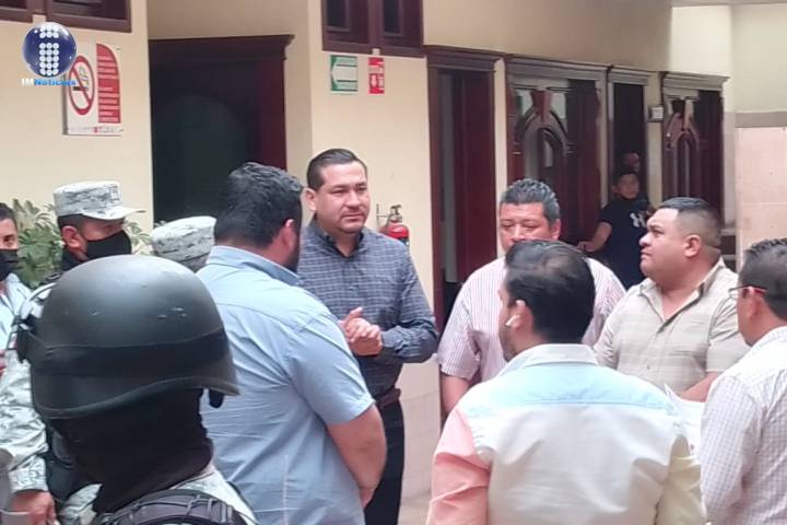 Ante un fuerte dispositivo de seguridad, en las inmediaciones del palacio municipal de Chilchota, finalmente, el alcalde accedió a citar a sesión extraordinaria de cabildo.