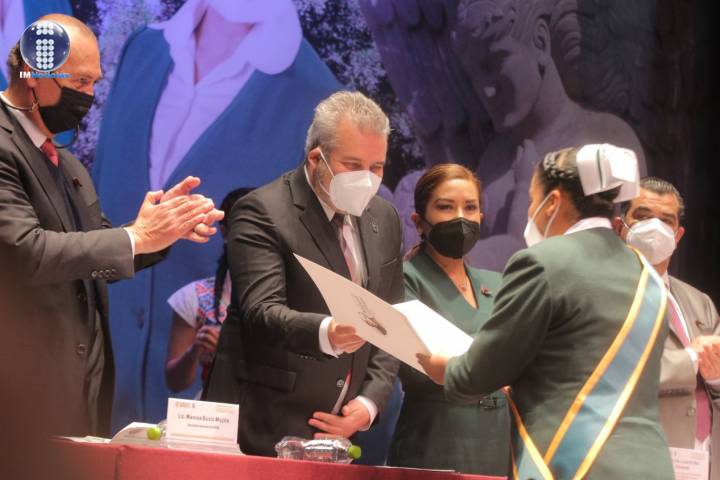 NOTICIAS 06/01/2022Condecora Bedolla a enfermeras y enfermeros michoacanos por su lucha contra la pandemia En reconocimiento al profesionalismo y valentía con el que afrontaron la pandemia del Covid-19, el gobernador, Alfredo Ramírez Bedolla, entregó la Condecoración "Miguel Hidalgo" Grado Banda, a 11 enfermeras y enfermeros del Instituto Mexicano del Seguro Social (IMSS), que se desempeñaron en la primera línea, dentro de los módulos de atención respiratoria y en las jornadas de vacunación.