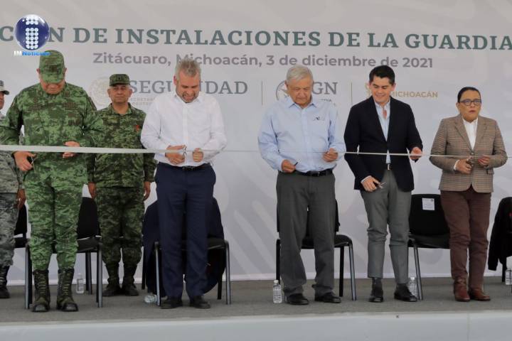 NOTICIAS 03/12/2021Inauguran AMLO y Bedolla Cuartel 33 de la Guardia Nacional en Michoacán El gobernador Alfredo Ramírez Bedolla y el presidente de la República, Andrés Manuel López Obrador inauguraron las instalaciones del Cuartel de la Guardia Nacional ubicado en Zitácuaro y ahí, se anunció la apertura de otros complejos en Michoacán para el próximo año.