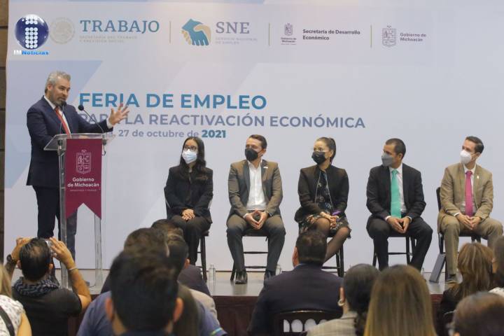 NOTICIAS 27/10/2021Inaugura Bedolla la Feria del Empleo para la Reactivación Económica El gobernador Alfredo Ramírez Bedolla inauguró la Feria del Empleo para la Reactivación Económica en la que, 50 empresas ofrecen 600 vacantes a las y los michoacanos que buscan trabajo.