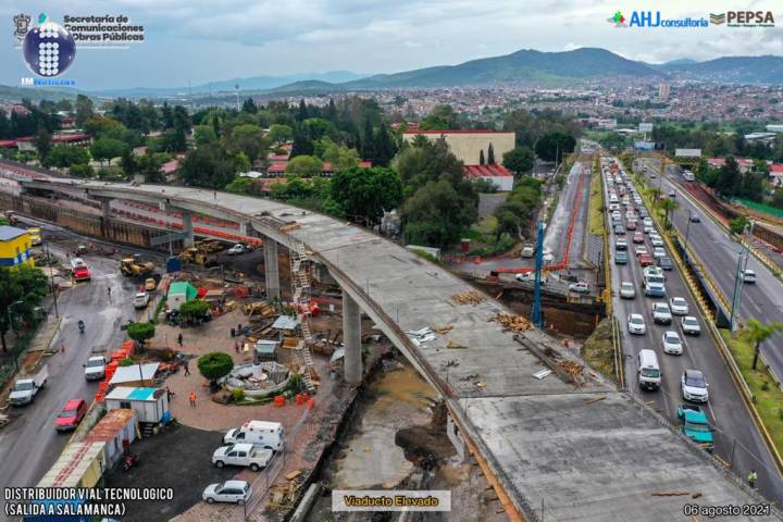 NOTICIAS 22/08/2021Avanza construcción de distribuidores viales de MoreliaUn avance del 65 por ciento registra el distribuidor vial "Tecnológico", en la salida a Salamanca de Morelia, gracias al programa constructivo de la administración estatal del gobernador Silvano Aureoles Conejo, que permite acelerar los trabajos sin condicionar la calidad de los procesos y materiales empleados.