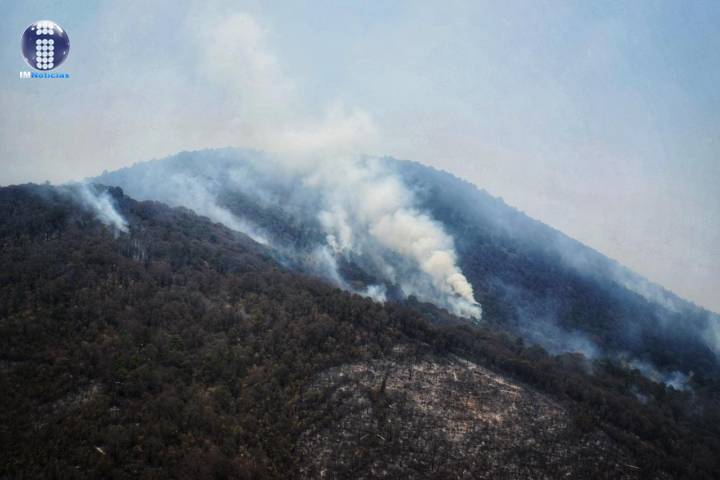 El helicóptero de la Guardia Nacional MI-17 inició trabajos de combate en aire para reforzar los trabajos que realizan en tierra brigadas de la Comisión Forestal del E... Ver más...