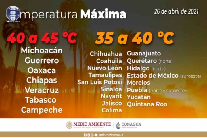 Tal es el caso de algunas zonas de la Tierra Caliente, donde las temperaturas podrían rebasar los 40 grados Celsius.