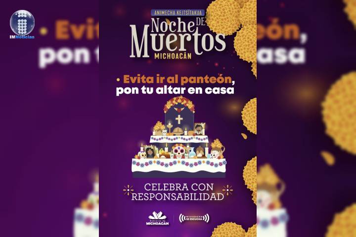 NOTICIAS 26/10/2020En micrositio del Gobierno de Michoacán, lineamientos para celebrar con responsabilidad la Noche de MuertosCon el objetivo de informar puntualmente a los michoacanos sobre las medidas implementadas para celebrar con responsabilidad la Noche de Muertos, el Gobierno del Estado, a través de la Coordinación General de Comunicación Social habilitó el micrositio https://michoacan.gob.mx/wp-content/uploads/2020/10/NOCHE-DE-MUERTOS-2020_ComiteSalud-2.pdf, en el que se encuentran disponibles los principales lineamientos.