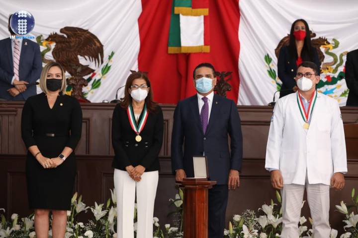 En Palacio Clavijero, el mandatario estatal y los legisladores condecoraron a Francisco Lunar Vargas (post mortem), doctor que ante la emergencia sanitaria continÃ... Ver más...