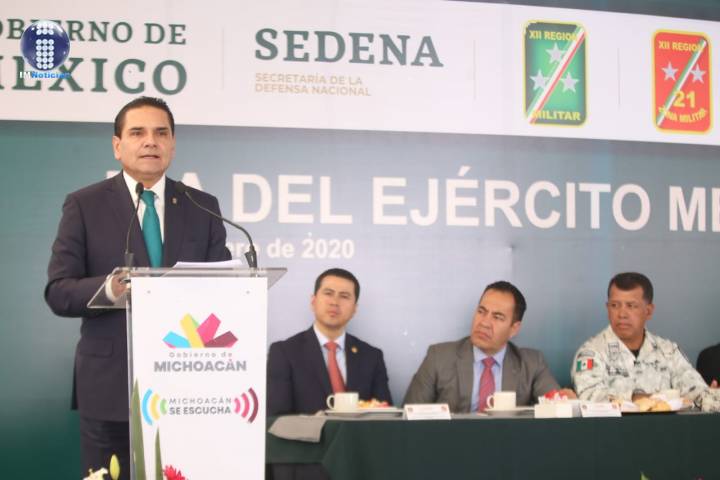 NOTICIAS 19/02/2020Ejército Mexicano, institución crucial para proteger a las familias: SilvanoLa lealtad inquebrantable, valentía y compromiso por la defensa de la democracia de las Fuerzas Armadas, es un papel crucial en la protección y seguridad de nuestras familias, reconoció el Gobernador de Michoacán, Silvano Aureoles Conejo en el evento conmemorativo del Día del Ejército Mexicano.